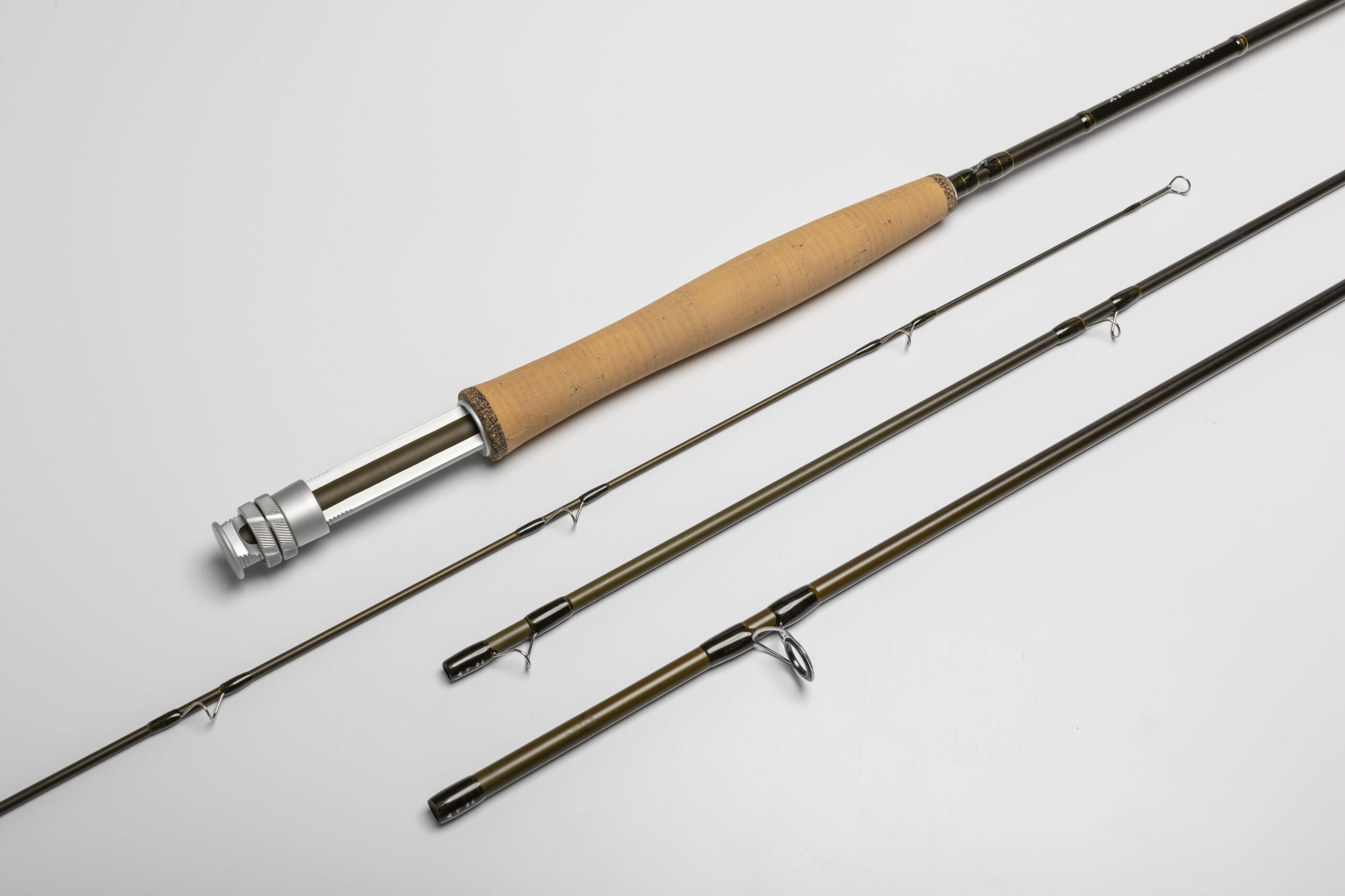 Cañas Mosca RISE XT, 4 tramos. Grafito Super alto módulo, Mango de corcho 3A reforzado en las puntas, Portareel de aluminio anodizado con inserto de grafito, funda de pana y tubo rígido forrado y bordado. Tramos de repuesto sin trámites.